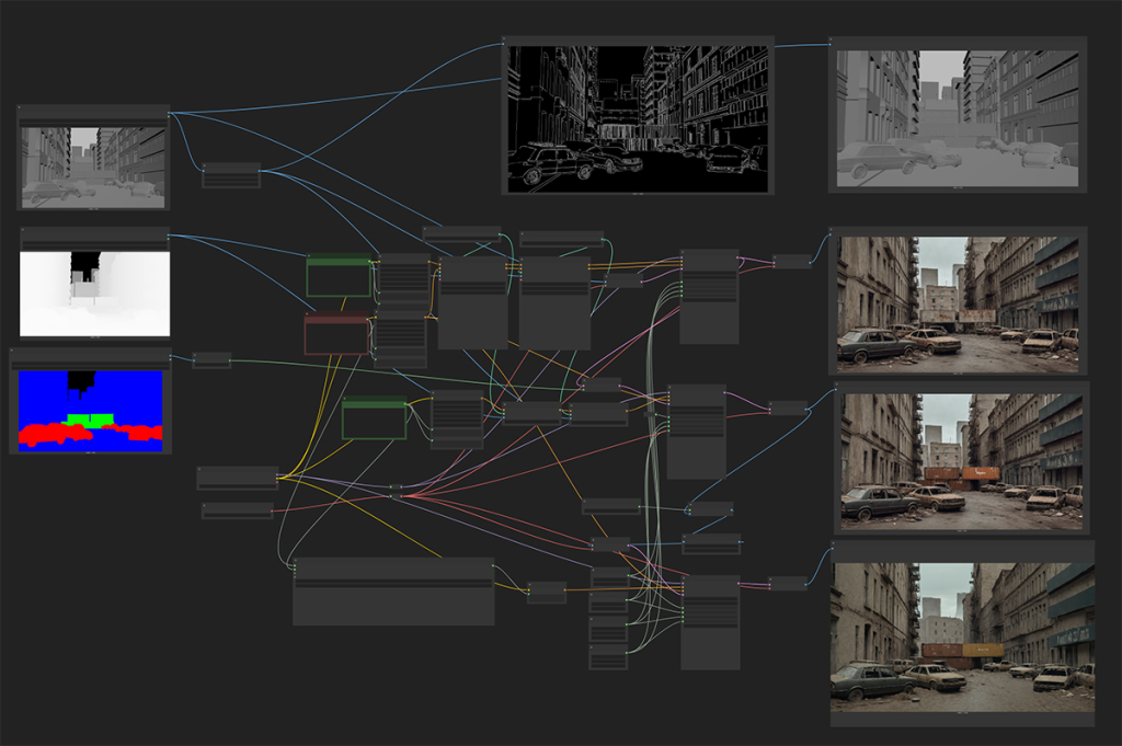 In a conventional CG pipeline, This would require a large amount of resources. So the prospect of being able to use a workflow like this to speed up the process is interesting.