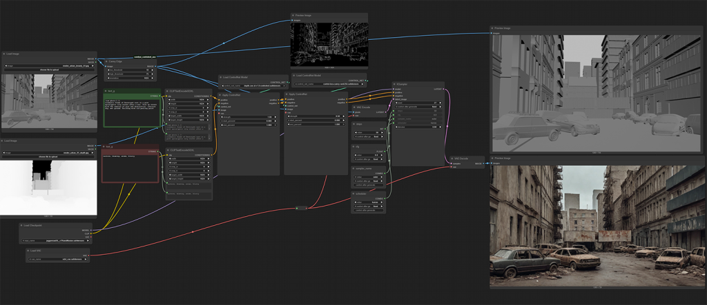 • Canny: This utilizes the normal render to derive an edge detect image. This is also used to help place detail that is found in the CG render.
